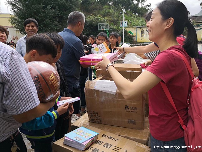 协会全体人员及会员单位代表们带着一份强烈的社会责任心,带着采购的书籍、学具、运动用品及捐款前往贵州省贞丰县龙场镇三河小学,与孩子们分享一份爱心。